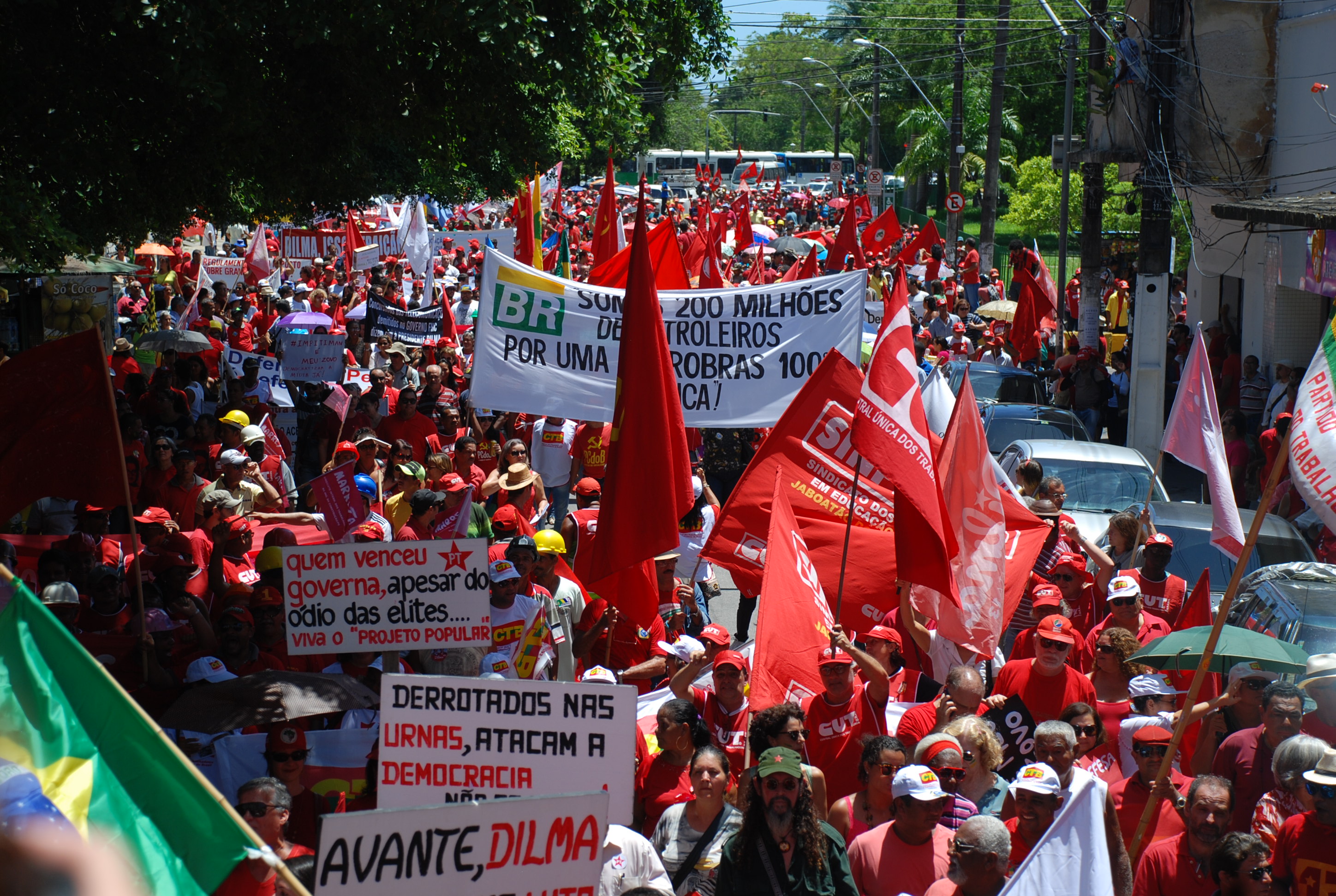 Às 7h, os manifestantes se concentraram no Parque 13 de Maio, nas proximidades da Câmara dos Vereadores, e várias lideranças fizeram uso do microfone para falar sobre a importância desse tipo de mobilização, para o fortalecimento da democracia no Brasil. De acordo com o discurso do presidente da Fetape, Doriel Barros, as pessoas estão ocupando as ruas para que se possa garantir e ampliar os avanços da classe trabalhadora que, nos últimos 13 anos da gestão do PT, aumentou seu poder aquisitivo, conseguindo consumir bens e serviços que, antes, eram privilégios de poucos. "Esse fato tem desagradado boa parte da elite brasileira, que tem chegado até a falar na possibilidade de tirar a presidente Dilma do poder, esquecendo que ela foi eleita dentro de um processo democrático. Nós iremos às ruas todas as vezes que for necessário, pois, é por meio da luta, que os movimentos sociais e sindicais reivindicam e conquistam direitos”.