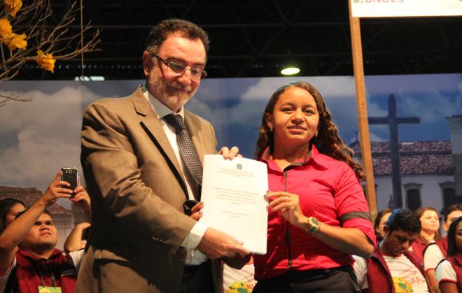 | Depois de várias audiências junto ao governo Federal, o Ministro do Ministério do Desenvolvimento Agrária (MDA), Patrus Ananias, trouxe na abertura oficial do 3º Festival da Juventude Rural do 3º Festival da Juventude Rural, respostas à Carta Proposta da Juventude Rural Brasileira e da América Latina. Entre as respostas demandadas pelos jovens do campo, da Floresta e das Águas apresentadas pelo Ministro do MDA , está o lançamento do edital da Juventude Rural que estabelece a parceria entre o MDA, O BNDES e Fundação do Banco do Brasil. O edital tem como finalidade destinar 5 milhões do fundo social para projetos de cooperativas e associações de jovens voltados para Produção, beneficiamento ou comercialização de produtos Agrícolas e não Agrícolas; Prestação de serviços e Turismo Rural. Com a atenção para valorização das questões de gênero e ao fortalecimento de práticas sustentáveis e promoção da agroecologia e agrobiodiversidade, o edital permite a compra de bens tangíveis necessários á implantação e á execução dos projetos. Patrus Ananias ainda assinou a segunda chamada de ATER voltadas especificamente para juventude rural que deve atender toda demanda mapeada e qualificada pela CONTAG e vários movimentos sociais, que soma um total de 102 milhões. São cerca de 22.800 jovens, distribuídos em 23 estados, com foco na agroecologia. A chamada trabalha a extensão rural visando a promoção da autonomia e da emancipação dos/as jovens agricultores/as rurais, a organização produtiva, o acesso ás políticas públicas e o estímulo á sucessão rural. Em nome do Governo Federal o ministro do MDA também prometeu a juventude rural que até o final do governo da presidenta Dilma Rousseff, todos e todas que vivem debaixo da lona, ao todo cerca de 200 mil trabalhadores/as rurais serão assentados/as. Que a Reforma Agrária ampla e massiva, pilar do Projeto Alternativo de Desenvolvimento Rural Sustentável e Solidário (PADRSS) e defendida em todas as ações estratégicas do MSTTR, pauta também presente do caderno de pauta da juventude rural do 3º Festival da Juventude Rural, deve ser consolidada ainda com o atual governo federal brasileiro. “Foi importante a presença do governo, pois em festivais anteriores nunca o governo federal se fez presente para apresentar resposta ás nossas reivindicações. O anúncio feito pelo Ministro Patrus Ananias é recebido de forma comemorativa pela CONTAG e suas instâncias, pois tanto o edital que destina 5 milhões do fundo social para projetos de cooperativas e associações de jovens voltados para Produção, assim como anúncio da segunda chamada de ATER e consolidação da Reforma Agrária, são sonhos se concretizando para o/a jovem do meio rural. Mesmo com tais conquistas, refletimos que precisamos muito mais para conquistar o campo, floresta e águas que precisamos para garantir autonomia e dignidade para juventude rural” Mazé Morais, secretária de Juventude Rural da CONTAG. |