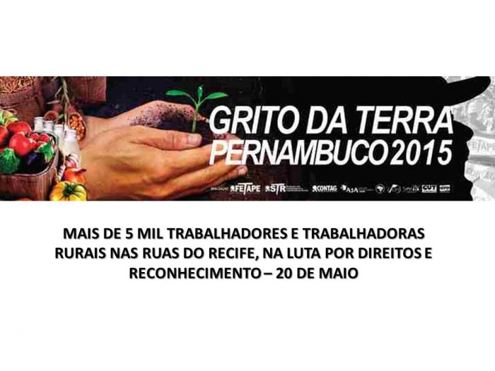 Em sua 5ª Edição, o Grito da Terra Pernambuco pretende expressar a indignação das populações do campo com a falta de atenção do Estado para as suas pautas. Com bandeiras, faixas, cartazes e entregando mudas e sementes à população, homens e mulheres de dezenas de municípios querem lembrar aos políticos e à sociedade em geral que mais de 70% dos alimentos colocados na mesa dos brasileiros, todos os dias, são frutos do trabalho da agricultura familiar.