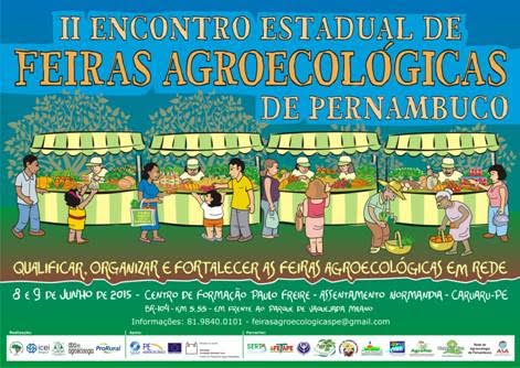 E é pela importância desse espaço de comercialização, mas também de troca de experiências que será realizado o 2º Encontro Estadual das Feiras Agroecológicas, nos dias 08 e 09 de junho de 2015, no Centro de Formação Paulo Freire, que fica no Assentamento Normandia, em Caruaru. O primeiro foi realizado em 2005. A atividade tem por objetivo qualificar, organizar e fortalecer as feiras, além de buscar ampliar as possibilidades de apoio e reconhecimento, por parte dos governos, para essas iniciativas.