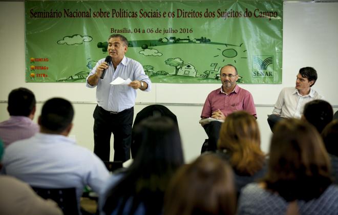 Na manhã de hoje (5), o ex-ministro da Secretaria-Geral da Presidência da República Gilberto Carvalho participou de mesa de diálogo para falar sobre Pacto Federativo e os Espaços de Participação Social aos cerca de 120 dirigentes sindicais que participam do Seminário Nacional de Políticas Públicas Sociais e os Direitos dos Sujeitos do Campo, realizado pela CONTAG, nesta semana, entre 04 e 06 de julho.