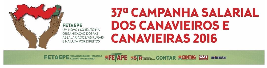 A 37ª Campanha Salarial dos Canavieiros e Canavieiras 2016 é coordenada pela Fetape e pela Federação dos Trabalhadores e Trabalhadoras Assalariados Rurais de Pernambuco – Fetaepe, e conta com apoio da Confederação Nacional dos Trabalhadores na Agricultura (Contag) e do Departamento Intersindical de Estatísticas e Estudos Socioeconômicos (Dieese).
