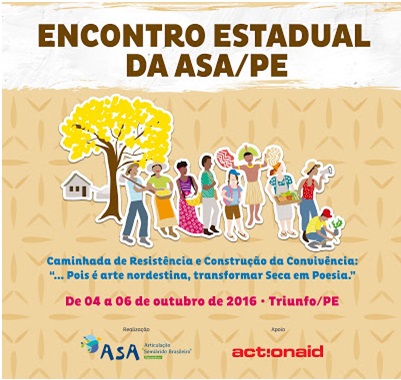Caminhada de Resistência e Construção da Convivência: "... Pois é arte nordestina, transformar seca em poesia"'. É com este lema que acontece o Encontro Estadual da Articulação Semiárido Pernambucano (ASA/PE) entre os dias 04 e 06 de outubro, em Triunfo, Sertão do Pajeú. O encontro é uma preparação para a ida dos/as representantes do estado ao IX Enconasa - Encontro Nacional da Articulação Semiárido Brasileiro, que acontece em novembro, na cidade Mossoró, Rio Grande do Norte.