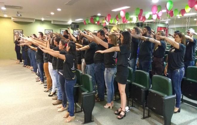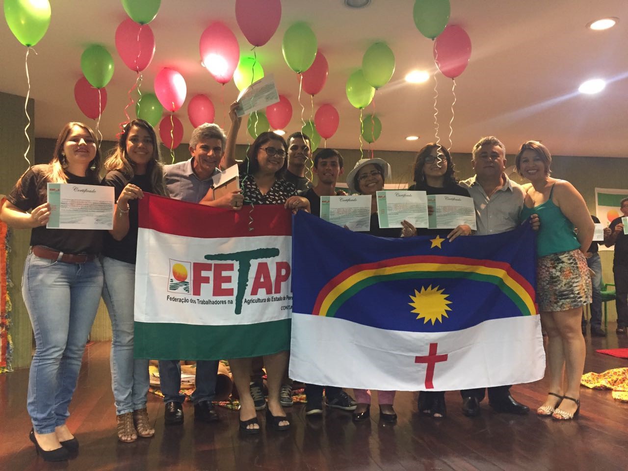 Foi com o sentimento de dever cumprido que o secretário de Formação e Organização Sindical da CONTAG, Juraci Souto, discursou para a VI Turma e demais pessoas presentes na solenidade de Transformatura. “Falando da nossa turma Coração Valente, fomos iluminados por passar por um momento crítico juntos, ao termos passado por um golpe com o impeachment da presidenta Dilma, mas isso nos fortaleceu na luta. Essa turma também vivenciou a comemoração dos 10 anos da nossa Escola, em agosto, e foi protagonista no início da utilização da plataforma Moodle. E a participação dos companheiros e companheiras de outros países também foi um dos destaques. Apesar de tudo, ainda temos muitos desafios. A formação política não se encerra aqui, é apenas um momento para começar a nossa luta! Devemos acreditar na formação como um processo de mudança e de transformação política.” O dirigente também agradeceu o compromisso da Diretoria e funcionários da CONTAG com os processos formativos da ENFOC. Em especial, homenageou a sua equipe de trabalho, bem como os secretários e secretárias de Formação das Federações. Após as falas políticas, a emoção tomou conta do auditório com as homenagens aos educadores e educadoras, ao secretário Juraci e aos colaboradores da ENFOC, e ao assistir o filme da VI turma Coração Valente, quando as lágrimas realmente rolaram. A solenidade foi encerrada com a entrega dos certificados aos formandos e formandas, que agora passam a ser educadores e educadoras populares do Movimento Sindical de Trabalhadores e Trabalhadoras Rurais (MSTTR). Os(as) tutores(as) também receberam certificados e foram ovacionados(as) por toda a turma. 10 anos ENFOC: eu faço parte! |