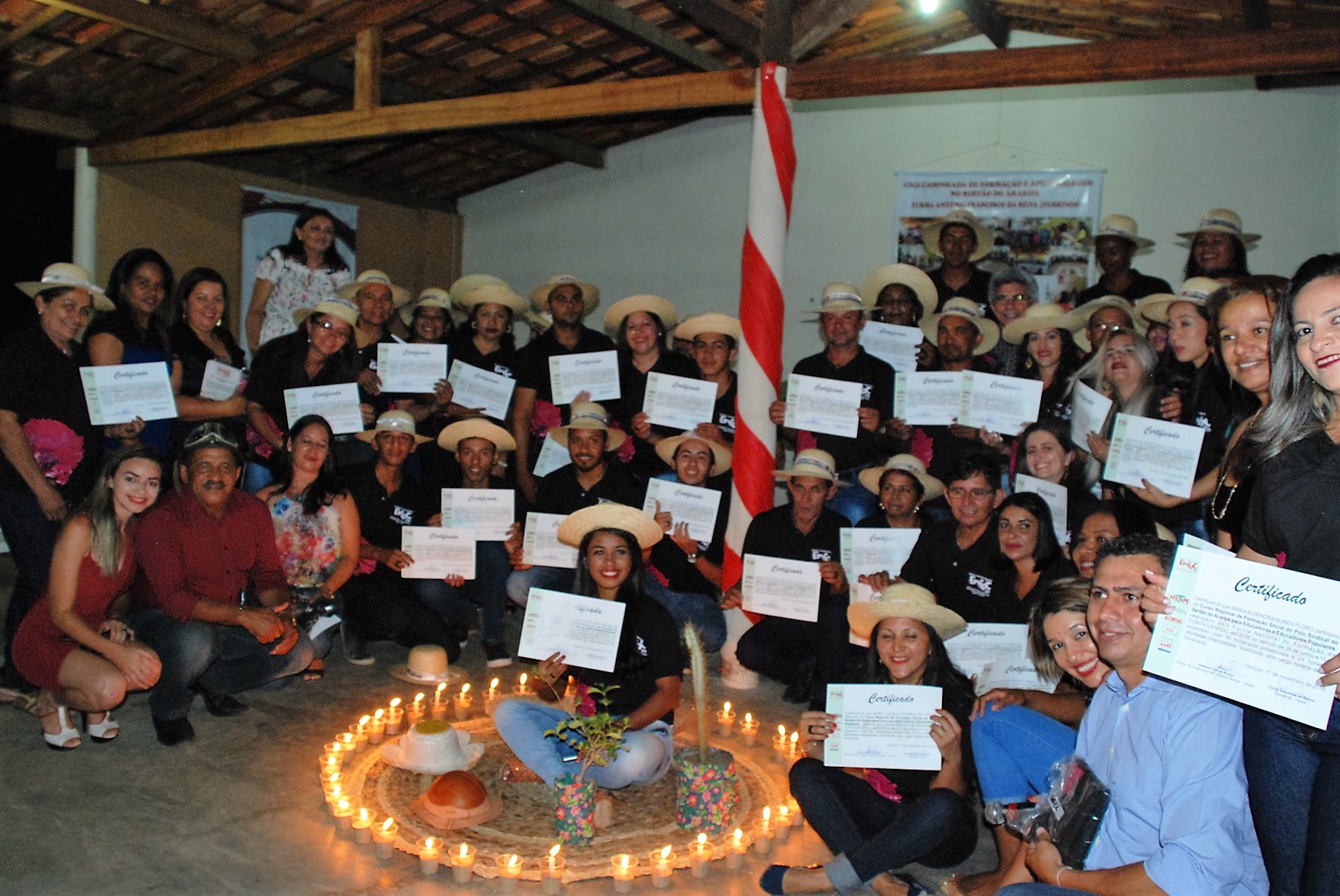 Na última sexta-feira (11), 38 homens e mulheres participaram da Transformatura da 1ª Turma do Curso Regional de Formação Social do Polo Sindical do Sertão do Araripe, tornando-se, a partir de agora, educadores e educadoras populares. A atividade, que é parte estratégica de multiplicação criativa, acontece por meio de uma parceria entre a Diretoria de Organização e Formação da Fetape com a Escola Nacional de Formação da Contag (Enfoc).