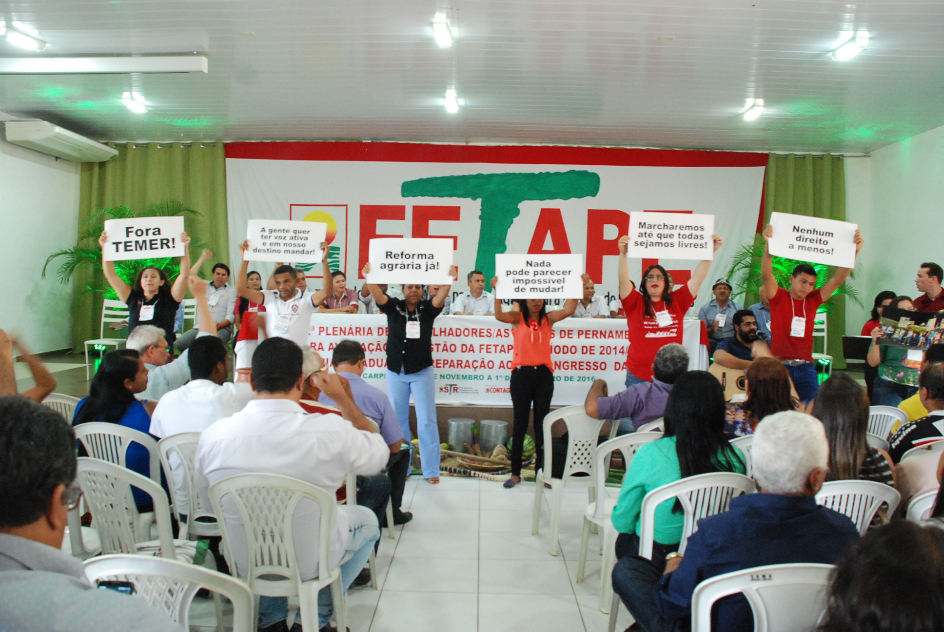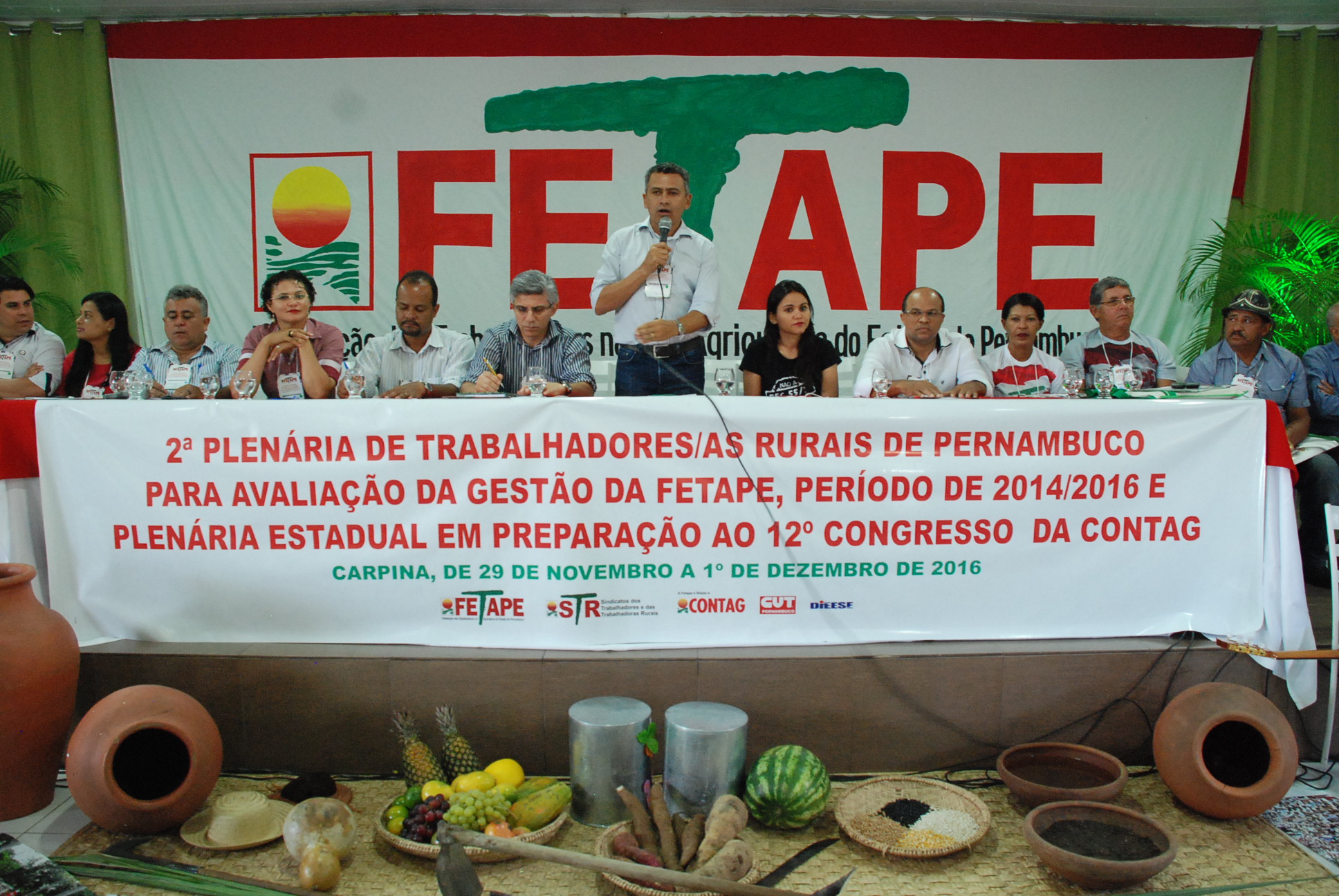 Começou, na manhã desta terça-feira, a 2ª Plenária de Trabalhadores/as Rurais de Pernambuco, para Avaliação da Gestão da Fetape, período 2014/2016. Uma mística inicial resgatou a importância da luta e da resistência, em um momento em que direitos historicamente conquistados estão ameaçados. A força e poder de mobilização da atual Direção da Federação foi enfatizado, mostrando que, somente com unidade, é possível vencer os desafios apresentados pela atual conjuntura.