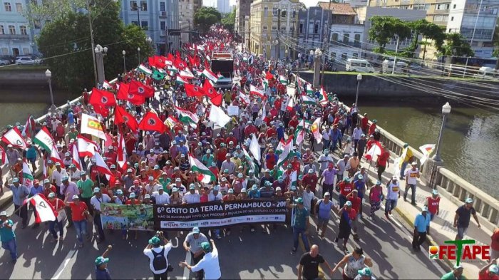 Um grito de indignação, mas também de resistência. Esse foi o tom do 6º Grito da Terra Pernambuco, que ocorreu ontem, no Recife, com a participação de mais de 6 mil pessoas de todas as regiões do estado. Diante desse cenário, parlamentares estaduais de diferentes partidos se comprometeram em articular suas bancadas contra a Reforma da Previdência, durante Audiência Pública na Assembleia Legislativa (ALEPE); já durante reunião no Palácio, o Governo do Estado também reafirmou esse compromisso, além de dar respostas a diferentes itens da Pauta de Reivindicações apresentada pela Fetape, Fetaepe e seus Sindicatos, em parceria com vários Movimentos e Organizações Sindicais e Sociais.
