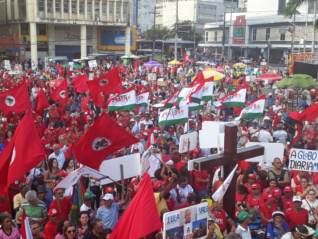 No Pátio do Carmo, Lula fez uma fala emocionada ressaltando o Nordeste, suas potencialidades e os ganhos que a região teve durante os governos do Partido dos Trabalhadores (PT) na presidência da república. “Conseguimos fazer muito neste país. Eu já tenho 71 anos de vida, e poderia estar numa cadeira de balanço cuidando da minha vida, mas não. Não vamos desanimar, nós temos que perseverar e lutar. Não queremos abrir mão dos nossos direitos. O povo nordestino não quer ter a cara da fome, quer ter a cara do trabalho. A cara do direito e do emprego. É disso que precisamos”, afirmou.