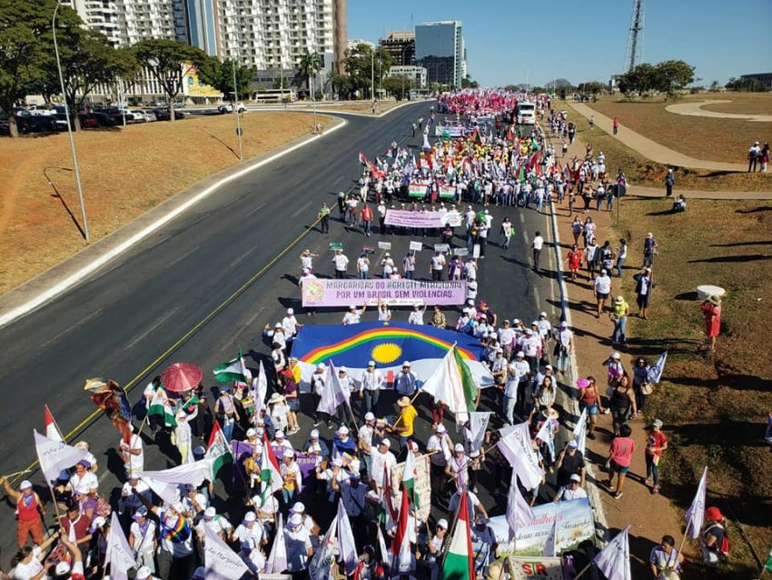 Em frente à Esplanada dos Ministérios, um dos momentos mais marcantes da Marcha. A leitura da carta do presidente Lula à Marcha das Margaridas, que foi lida pelo professor Fernando Haddad. “Fiquei muito feliz em receber a carta das Margaridas e saber que a Marcha das Margaridas segue forte nas luta por mais direitos e por um Brasil mais justo para as Mulheres do campo, das águas e das florestas”, diz um trecho da carta. “Quero muito cumprimentar a coragem verdadeira dessa marcha que leva as mulheres do campo para verem e serem vistas pelos poderosos de Brasília. Olhem bem para eles e que eles enxerguem o nosso povo, a quem devem respeito, para quem deviam trabalhar”, disse Lula em outra parte da carta.