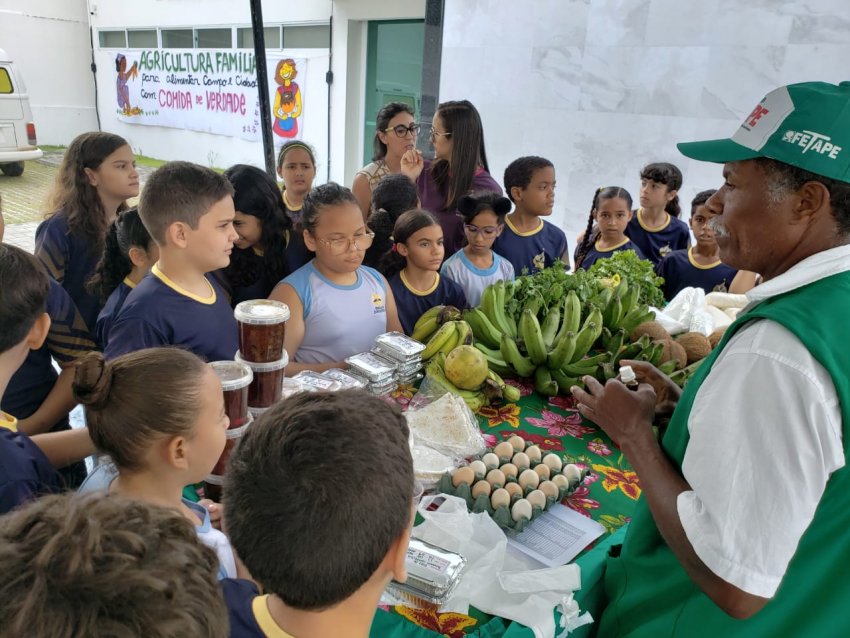Uma manhã de aprendizados e trocas entre estudantes e agricultores e agricultoras familiares de Pernambuco. Foi assim que aconteceu a visita de alunos e alunas do 4º ano do Ensino Fundamental I do Colégio Adventista do Recife, na manhã de hoje (12). Como atividade prática da matéria Ciências e Religião, na qual estudam sobre a alimentação saudável e a produção dos alimentos, as crianças vieram acompanhadas de professoras e da nutricionista da escola para visitar a feira agroecológica que acontece todas às quintas-feiras, das 7h às 11h, no estacionamento da Fetape.