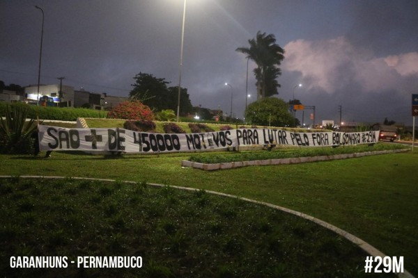Neste sábado (29) foram realizados no Brasil, vários atos pelo Fora Bolsonaro organizados por movimentos, entidades, partidos políticos e centrais sindicais. A FETAPE marcou presença nos atos em Pernambuco, como a mobilização na praça do Derby onde os participantes usavam máscaras, e organizados em fila, respeitando o distanciamento social, levaram cartazes e faixas lembrando as mais de 450 mil mortes pelo coronavírus.