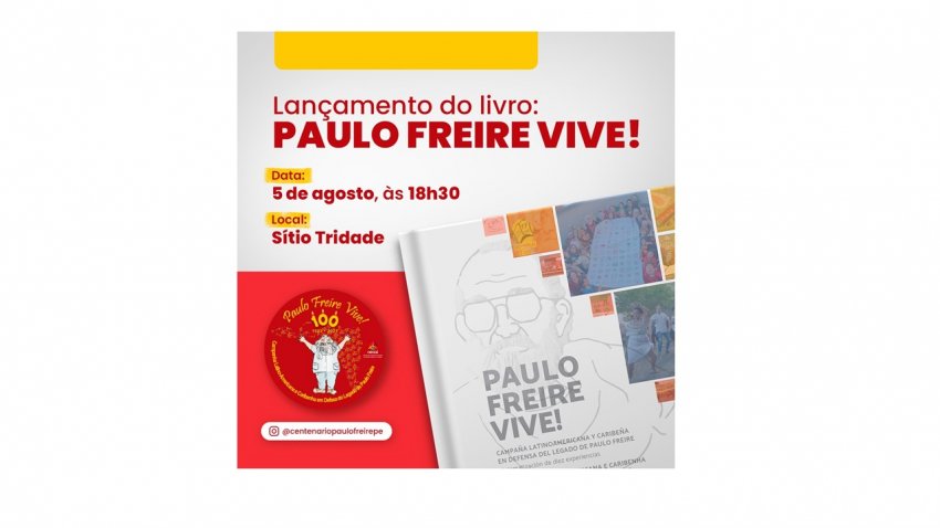 Será lançado, às 18h30, no Sítio da Trindade, no Recife, nesta sexta-feira (5/8), o Livro Paulo Freire Vive! que reúne a sistematização de experiências do Brasil, Argentina, Uruguai,Colômbia, Equador e Perú na defesa do legado Freiriano e objetiva a celebração do Centenário de Paulo Freire, considerado um dos maiores nomes da educação do século XX e contemporaneamente.