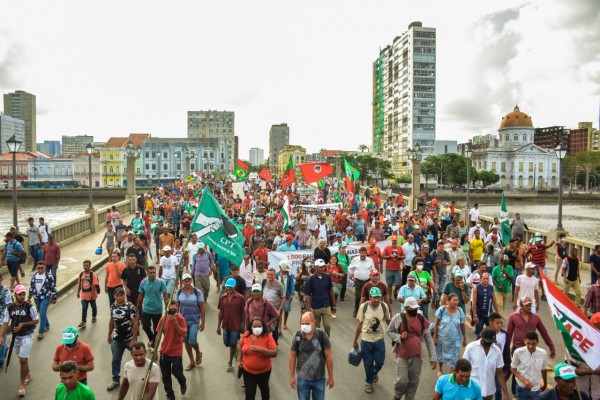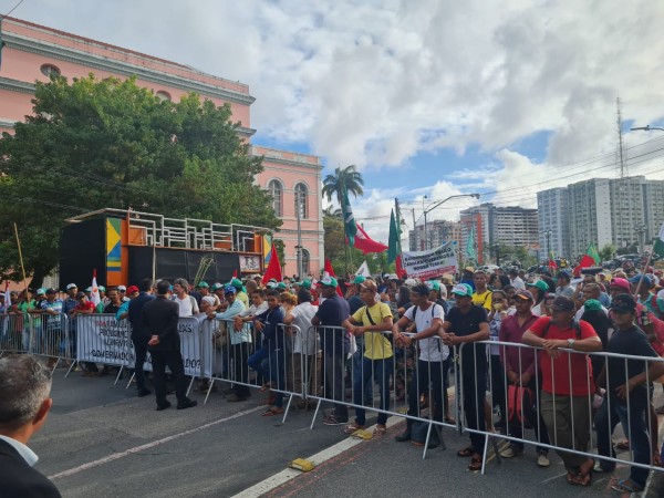 Por volta das 14h, os camponeses e camponesas seguiram em marcha pela Avenida Conde da Boa Vista em direção ao Palácio do Campo das Princesas. A diretora de Política para o Meio Ambiente da Fetape, Rosenice Nalva, contribuiu para animar a caminhada e sensibilizar também a população urbana que transitiva no local. “Hoje, a rua é nossa. É o nosso dia de luta, pois se o campo não planta, a cidade não janta”, destacou. Portando faixas e bandeiras, os agricultores e agricultoras seguiram todo o percurso de forma pacífica, entoando canções e palavras em defesa da reforma agrária e por paz e vida digna no campo.