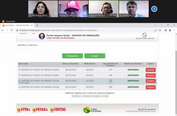Foram sorteadas centenas de prêmios, virtualmente, por videoconferência, e foi acompanhado por quase 100 pessoas representando as Federações e Sindicatos que participam do Fundo de Amparo Social. "A cada ano Pernambuco vem ampliando o número de premiações no Estado. É importante que os sindicatos possam fazer adesão ao Fundo de Amparo e garantir a participação de todos/as sócios/as no sorteio que acontece todo ano, no mês de outubro", avaliou o diretor de Finanças e Administração da Fetape, Paulo Roberto Santos.