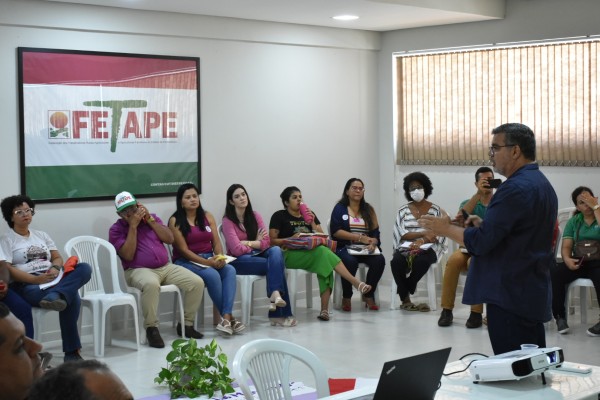 Pela direção da Fetape estiveram presentes Jenusi Marques, diretora de Organização e Formação Sindical, e Paulo Roberto Santos, diretor de Finanças e Administração, além de assessorias das diretorias de Política do Meio Ambiente, Política para a Juventude e Política para as Mulheres.