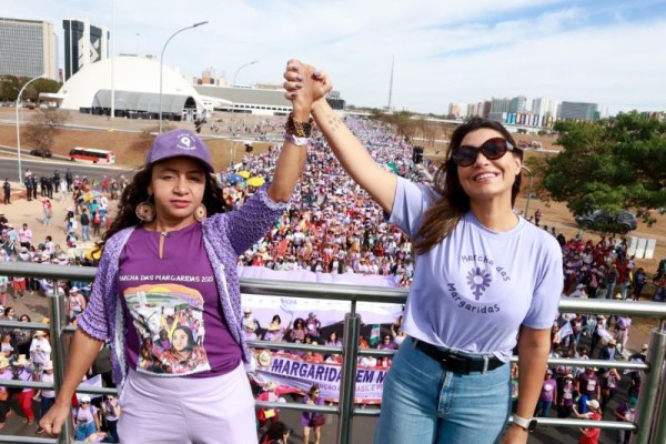 Brasília ficou florida com as ruas tomadas por mais de 100 mil Margaridas do campo, da floresta, das águas e das cidades na manhã desta quarta-feira (16). Com suas bandeiras, chapéus de palha, faixas, com seus cantos, batuques e toda a garra e energia, as Margaridas percorreram um trajeto de aproximadamente 6 quilômetros, na luta pela reconstrução do Brasil e por uma sociedade do bem viver.