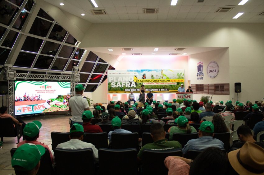 Agricultores e agricultoras familiares de todo o estado, lideranças sindicais, políticos, movimentos sociais e gestores públicos lotaram o auditório da Uast-UFRPE, em Serra Talhada, para o Lançamento Estadual do Plano Safra da Agricultura Familiar 2023-2024 e Ações do Banco do Nordeste para o Sertão pernambucano, na última sexta-feira (29). O Ministério do Desenvolvimento Agrário e Agricultura Familiar (MDA) apresentou os investimentos e as linhas de crédito. São 77,7 bilhões em ações para agricultores e agricultoras familiares de todo o Brasil. É o maior Plano Safra da Agricultura Familiar da história.