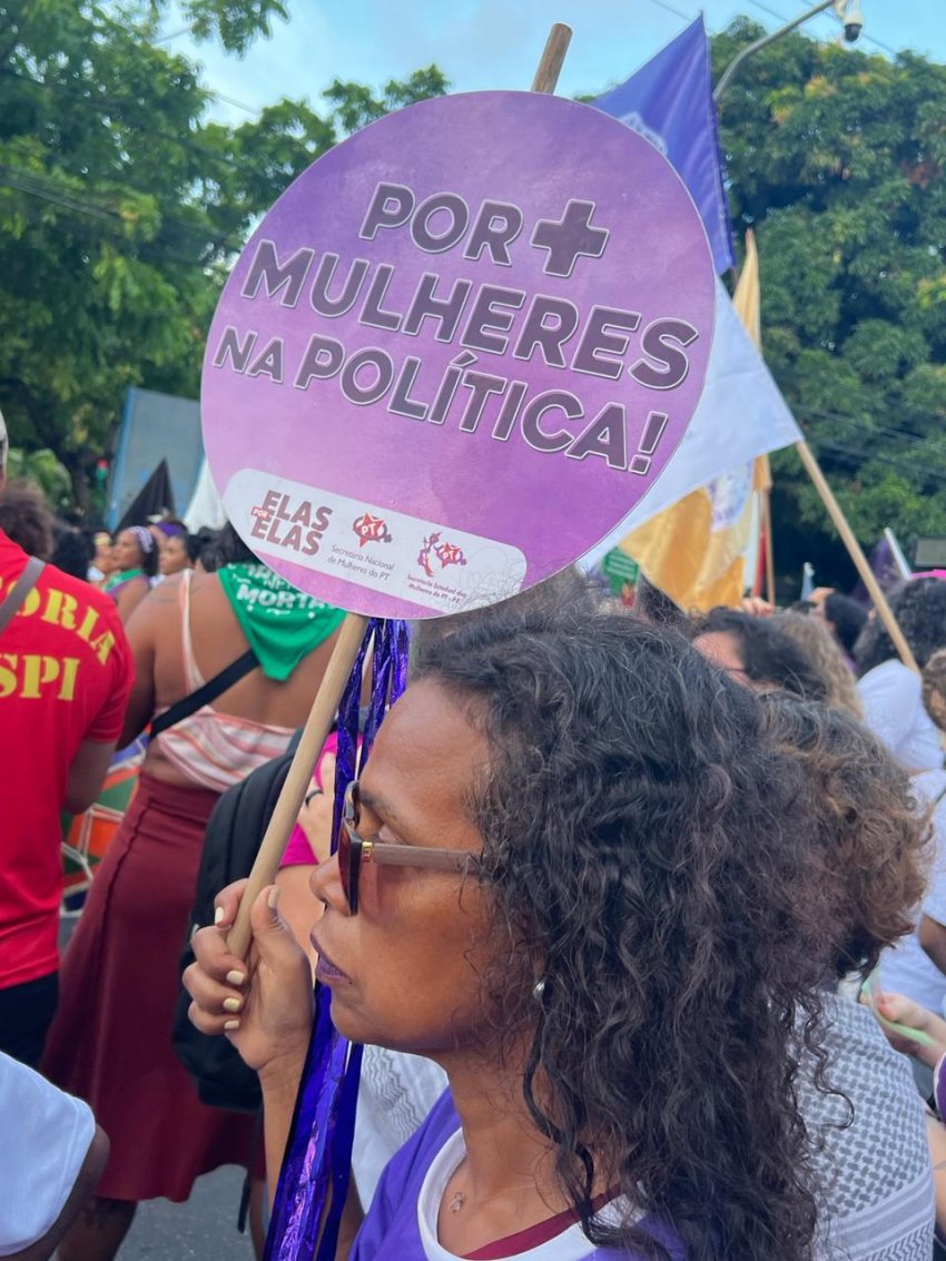 8 de Março – Do BNE, Cícera Nunes seguiu para o ato no Parque Treze de Maio. Mais de 5 mil mulheres se reuniram sob o lema "Pela vida das mulheres: pela legalização do aborto, contra o racismo ambiental e as violências, não às privatizações!".