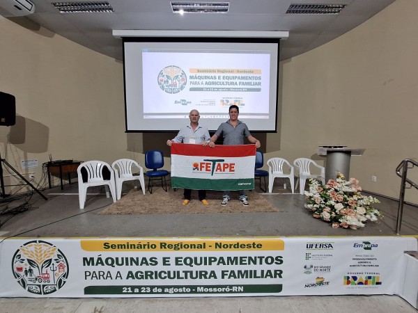As Diretorias de Política Agrícola e Agrária da FETAPE participaram do Seminário Regional Nordeste - Máquinas e Equipamentos para a Agricultura Familiar, organizado pelo MDA, em Mossoró e Apodi/RN nos dias 21, 22 e 23 de agosto. A proposta é promover a transferência de tecnologia em máquinas e implementos agrícolas para a agricultura familiar por meio da relação entre China e Brasil.