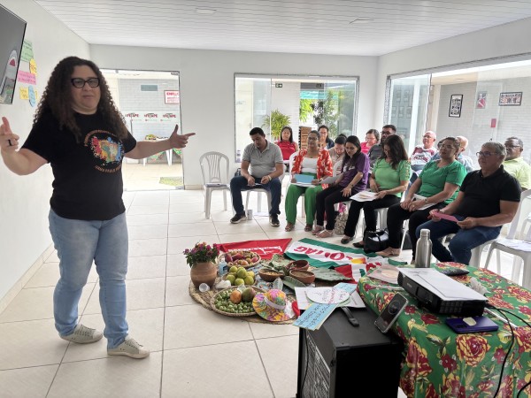 A educadora popular e assessora de Organização Sindical e Formação, Carla Caminha, trouxe para o debate a importância de olhar para a comunicação sob a ótica da Educomunicação Popular. “A comunicação no movimento sindical deve ser mais do que um instrumento de difusão de informações; deve ser um espaço de diálogo, escuta e construção coletiva e de formação, emancipatória e alinhada aos valores da luta sindical, da agroecologia e do PADRSS”, apresentou Carla.