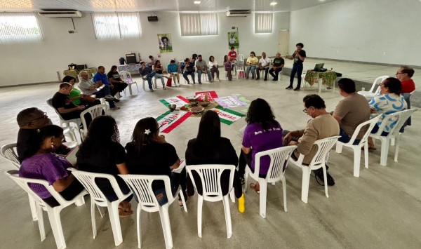 A abertura do encontro foi marcada por uma mística de acolhimento, com a realização de um minuto de silêncio em homenagem ao companheiro Falcão, falecido no último dia 8 de fevereiro.