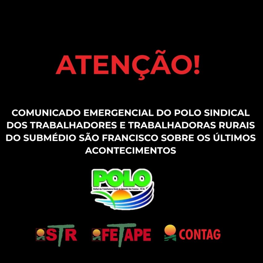 COMUNICADO EMERGENCIAL DO POLO SINDICAL DOS TRABALHADORES E TRABALHADORAS RURAIS DO SUBMÉDIO SÃO FRANCISCO SOBRE OS ÚLTIMOS ACONTECIMENTOS
